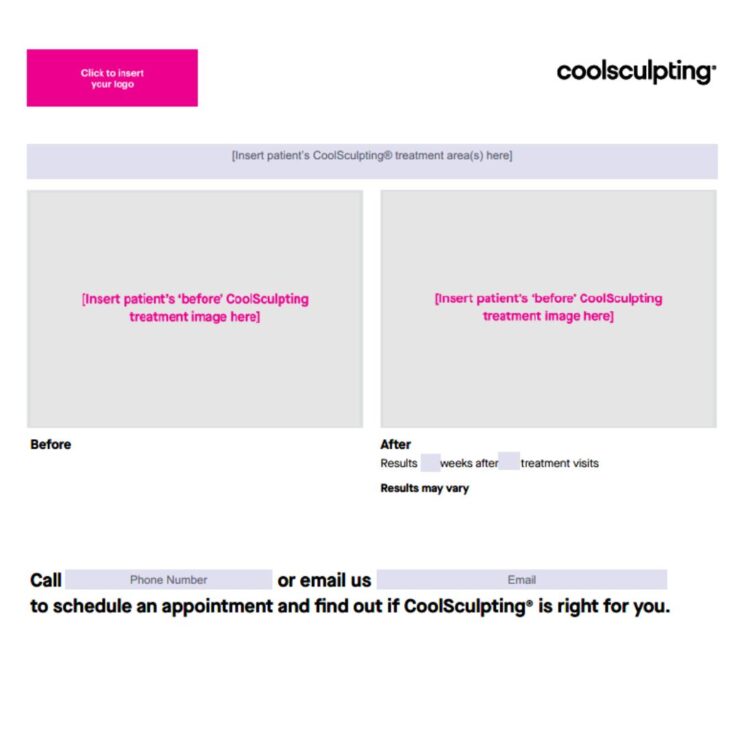 As with any medical procedure, a consultation should be done by a licensed healthcare professional to determine if the patient is a candidate for treatment. For a complete list of Contraindications, Warnings, Precautions, and Potential Side Effects, consult the CoolSculpting® System User Manual and the CoolSculpting® Elite System User Manual. Treatment applications that deviate from the guidelines are not recommended.