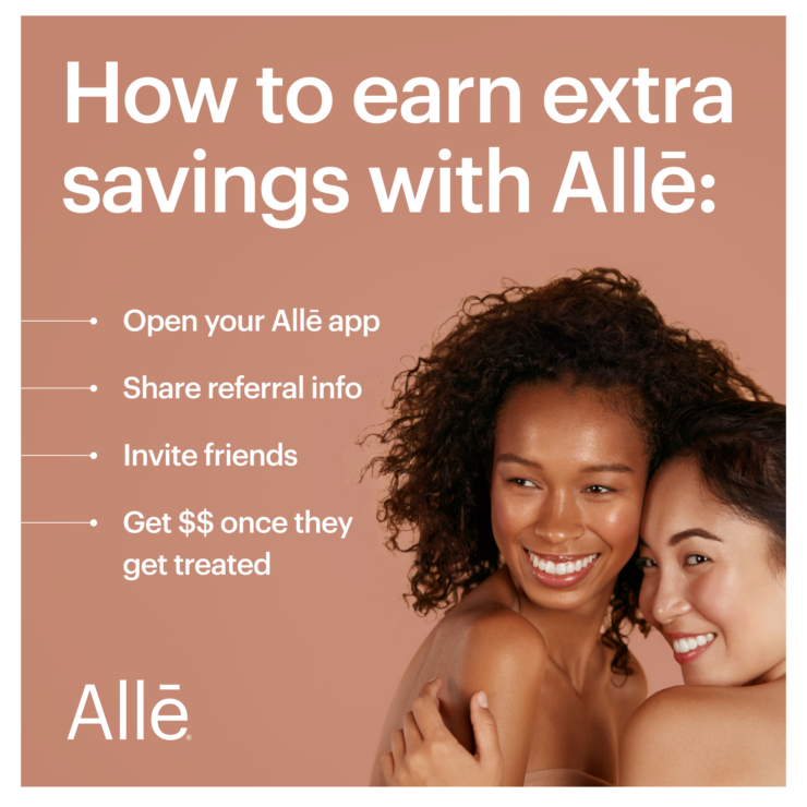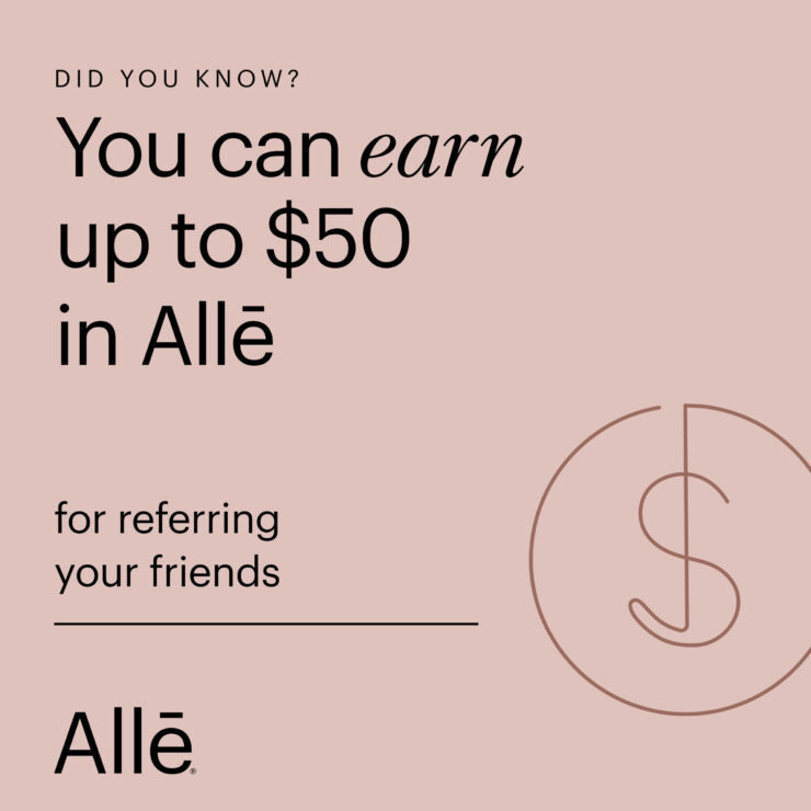 While supplies last, Allē Members can earn up to $50 in savings when they refer friends to join Allē. Their first five friends to create an account using their referral info will receive $50 on their first Allē product or treatment.